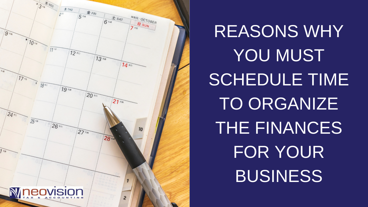 Our company is a big believer in scheduling time to organize the finances for your business. There are many reasons why we believe this and we are sharing them below.
